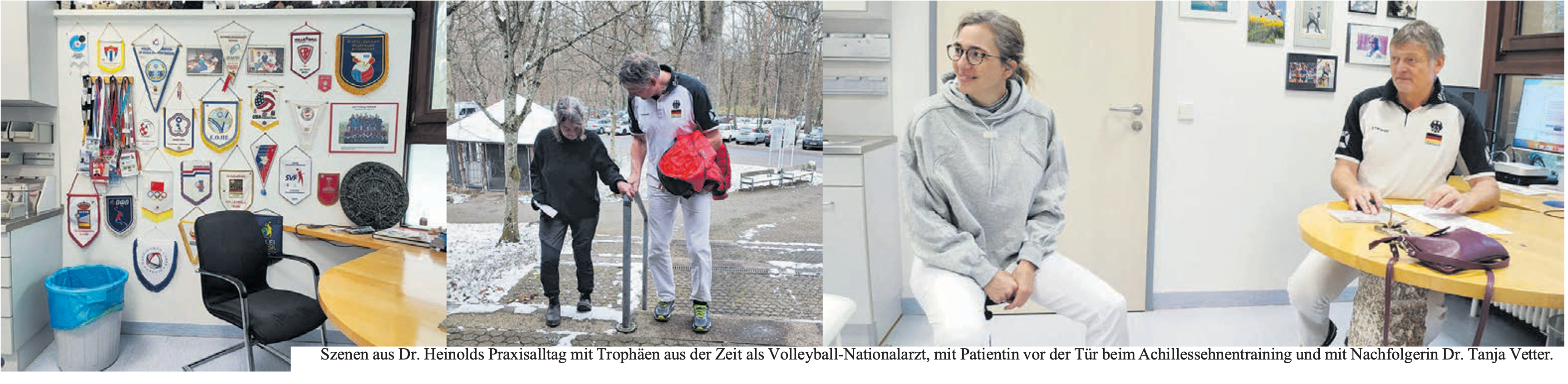 Die Praxis Dr. Heinold befindet sich in den Räumlichkeiten hinter den Heilquellen in Freiburg, wo außer ihm noch andere Sportärzte im MVZ tätig sind. Außerdem besteht die Möglichkeit zu röntgen, und es existiert eine physiotherapeutische Praxis. Dr. Heinold ist innerhalb dieses Hauses sozusagen eine Ein- Mann-Praxis. Die Frau an seiner Seite ist Praxisorganisatorin Martina Cook, verantwortlich für alles vomTelefontermin bis zum Aufziehen von Spritzen. Neu dabei ist Dr. Tanja Vetter, Fachärztin für phy- sikalische und Rehamedizin, die Ende des Jahres das Ruder in der Praxis übernimmt.